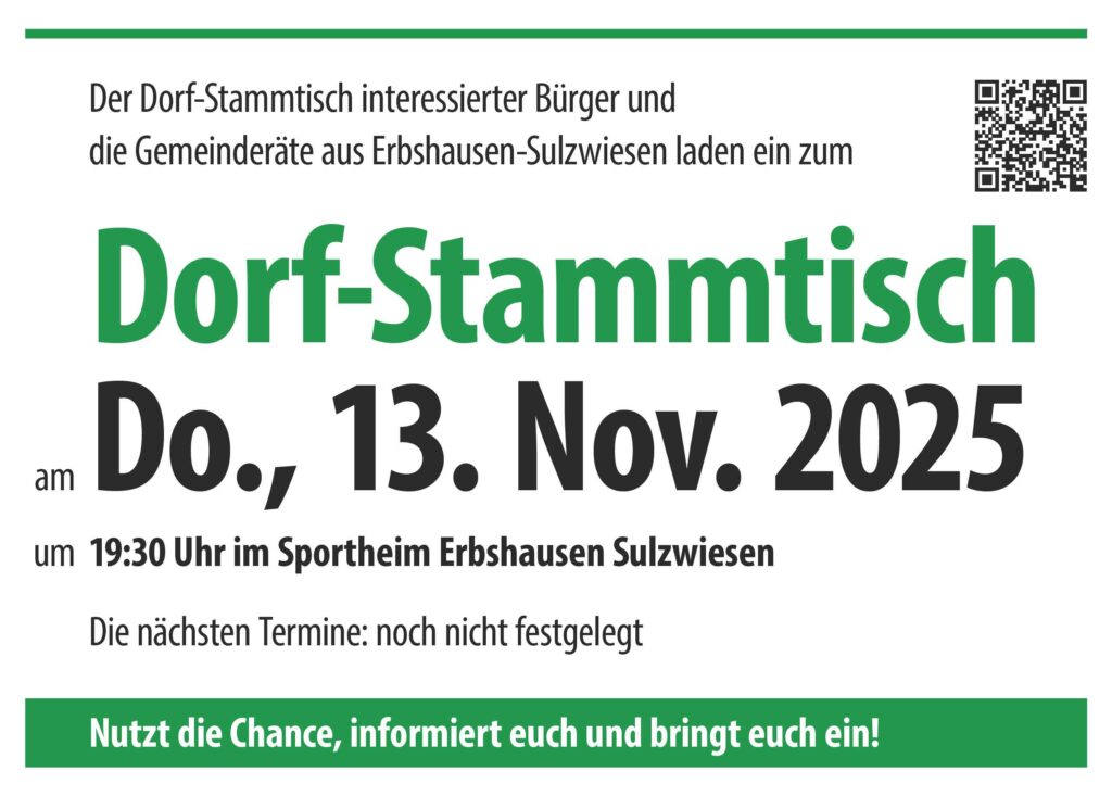 Der Dorf-Stammtisch ist ein mehrmals im Jahr stattfindendes Treffen interessierter Bürger und der Gemeinderäte aus Erbshausen-Sulzwiesen.